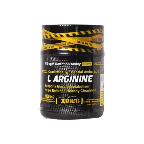 قرص ال آرژنین ۱۰۰۰ ژن استار Genestar L Arginine مکمل آمینو اسید حاوی ال آرژنین است. قرص ال آرژنین ۱۰۰۰ ژن استار، در هر قرص حاوی ۱۰۰۰ میلی گرم آرژنین برای عضله سازی و همچنین تقویت ماهیچه های بدن است. قرص آرژنین ۱۰۰۰ میلی گرم ژن استار از متابولیسم ماهیچه ها حمایت کرده و از تخریب عضلانی در اثر تمرینات شدید جلوگیری می کند. ال آرژنین این کار را با گشاد سازی عروق خونی و رساندن سریع تر مواد مغذی به عضلات بدن انجام می دهد.