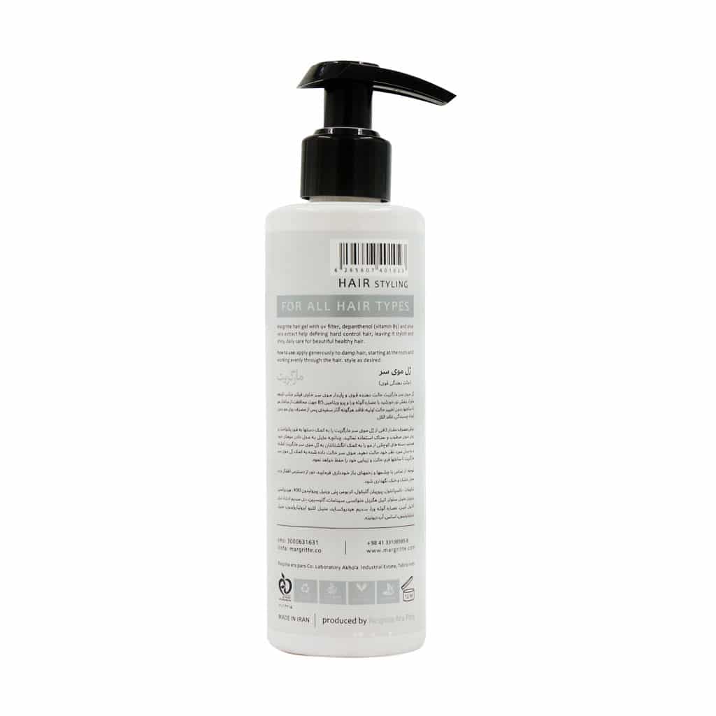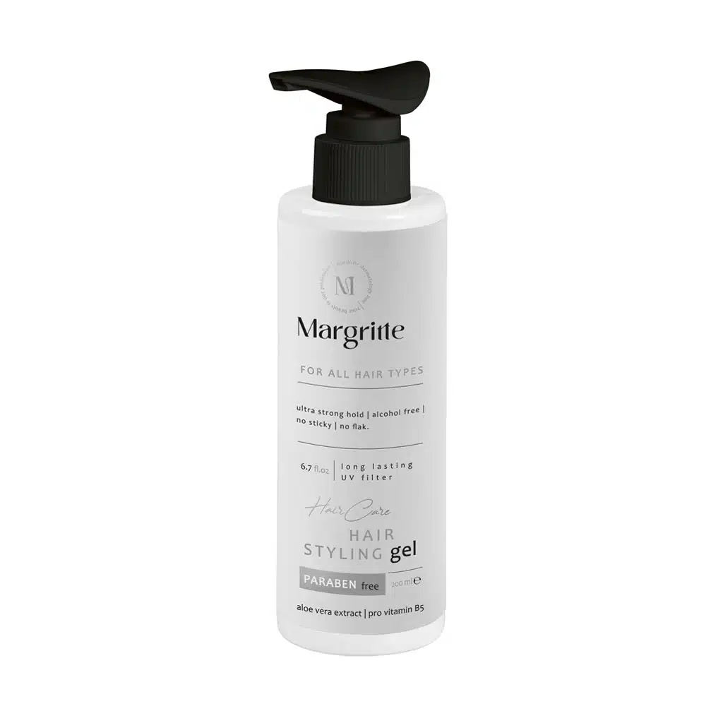 ژل موی سر حالت دهنده قوی مارگریت 200 میل، قادر است ساعتها موهایتان را در حالت دلخواه نگه دارد و از آنها در برابر اشعه ماورا بنفش خورشید نیز محافظت نماید.