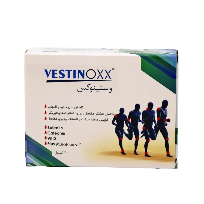 کپسول وستینوکس با استفاده از ترکیبات ضد التهابی طبیعی نظیر بایکالین و کاتچین، آنزیمهای پیشالتهابی COX و LOX را مهار میکند و در کاهش سریع و طولانیمدت درد و التهاب مفاصل موثر است.